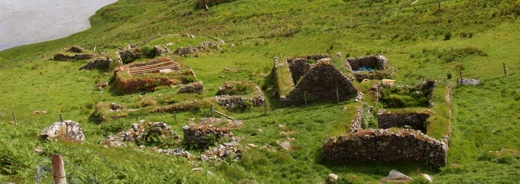 In questi terreni le coltivazioni dovevano essere protette dal vento, per cui venivano fatte crescere in veri e propri canali scavati nel terreno. Ancora oggi (a distanza di oltre un secolo) queste tracce sono ben evidenti sui pendii delle colline. I pascoli invece non erano mai vicini al mare (dove si trovavano i villaggi) ma nell'entroterra. Ogni croft aveva diritto ad un appezzamento, che poteva trovarsi anche ad alcuni km di distanza, e le bestie venivano lì accompagnate in primavera-estate dalle ragazze - mentre i ragazzi si occupavano di mansioni più impegnative come la pesca in mare aperto.